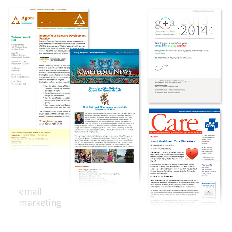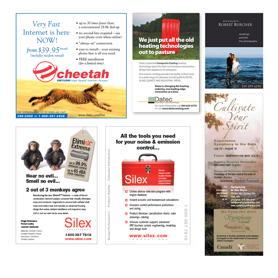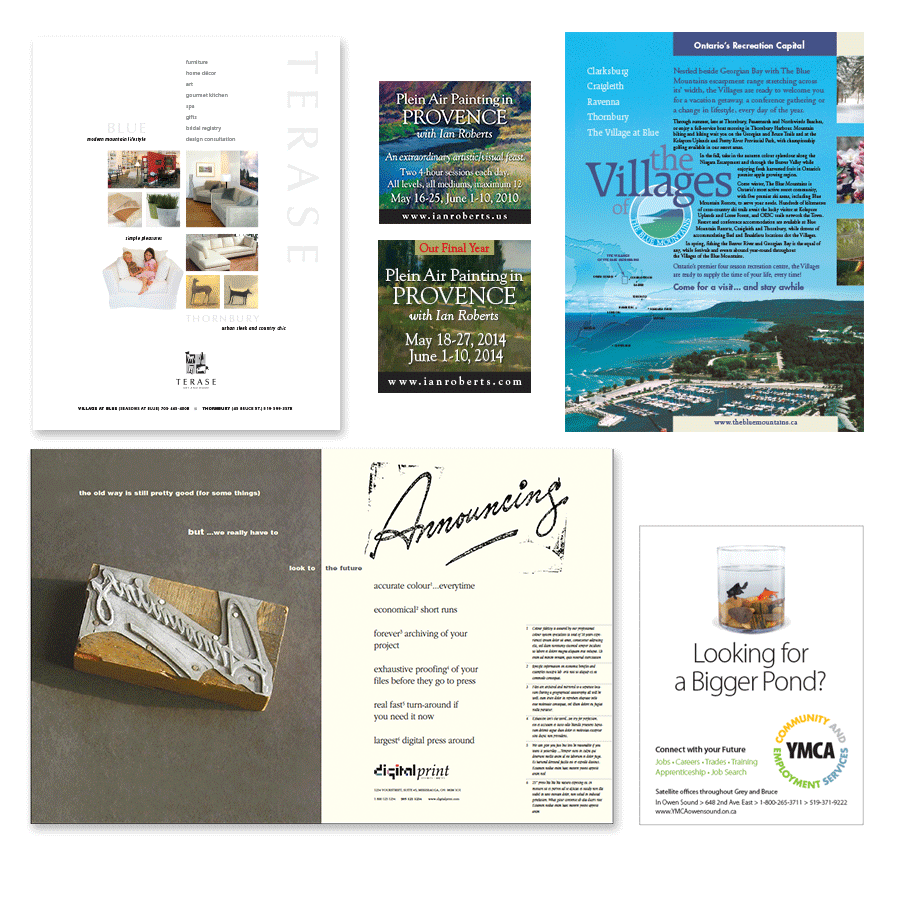 I use every tool and trick that I've learned over many years of working in the trade. Formal advertising-and-design training at the Ontario College of Art in Toronto, a few years of slogging it out in small studios, followed by work at the then-largest ad agency in the world – JWT (Toronto) – taught me a lot. When I became disenchanted with the frenetic world of advertising agencies, I formed Gillette+Associates.
