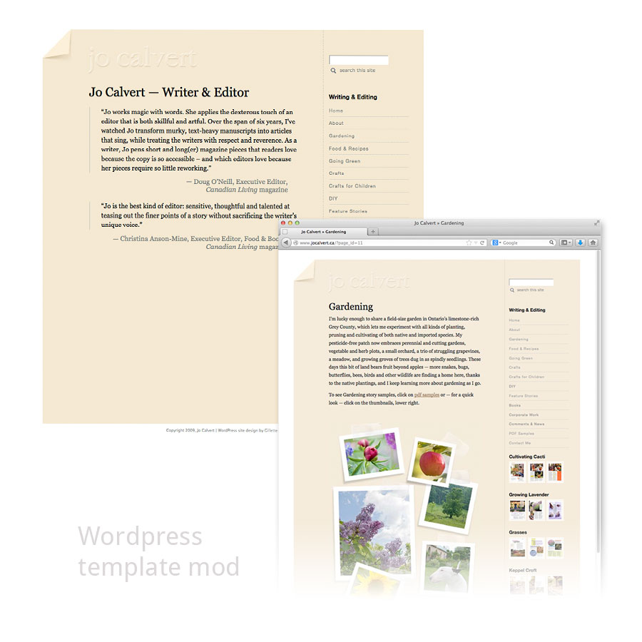 Note: This G+A site is not a WordPress site. I purchased a template ($40) to use as a starting point and modified it extensively to suit my taste using CSS and off-the-shelf JavaScript Code.